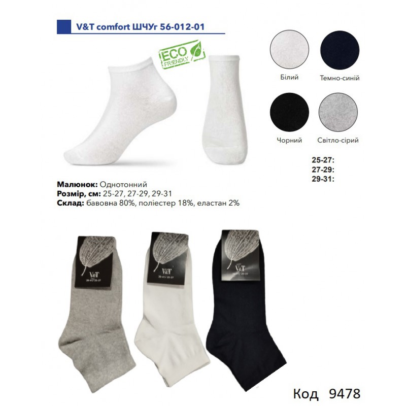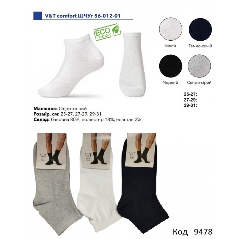 V&T Шкарпетки бавовняні чоловічі ШЧУг 56-012-01 25-27//29-31 Мікс 12(3)шт