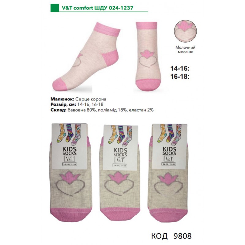 V&T Шкарпетки бавовняні для дівчинки короткі ШДУ 024-1237 14-16/16-18 12(3)шт