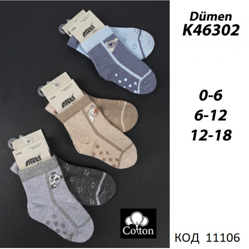 ArtiKatamino Шкарпетки бавовняні для хлопчика ясельні (1шт зABS+1шт без) K46302/палетка2шт 6(3) шт.