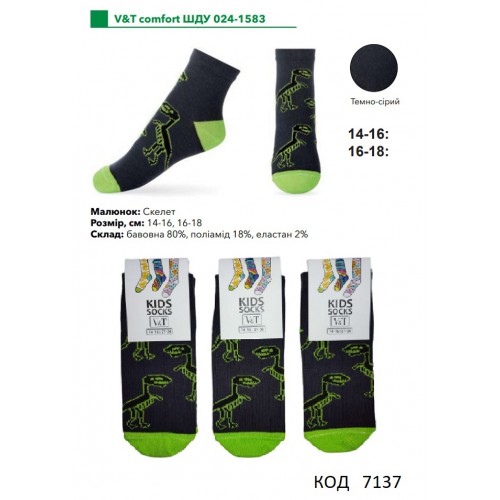 V&T Шкарпетки бавовняні для хлопчика ШДУ 024-1583 14-16/16-18 12(3)шт