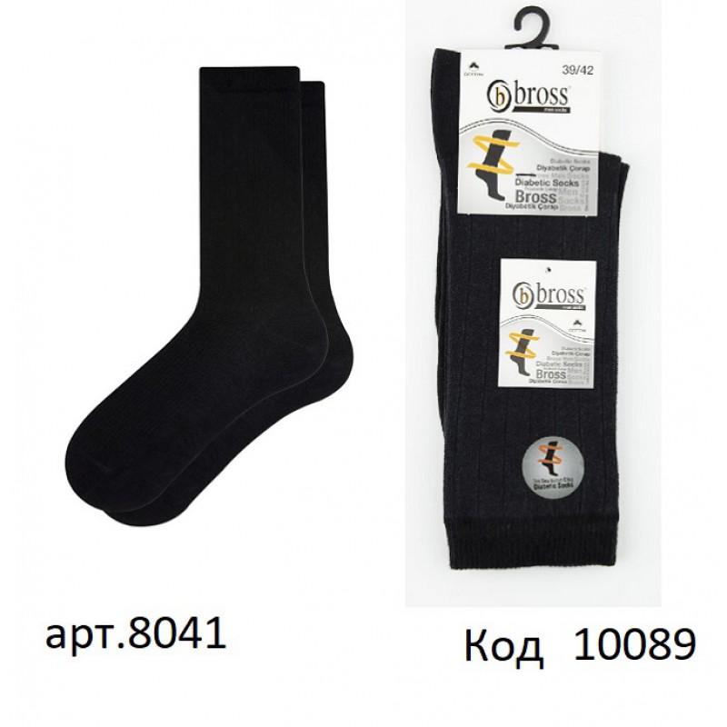 Bross Шкарпетки бавовняні чоловічі 8041 без резинки Чорний 39-42/43-45 12(3)шт.