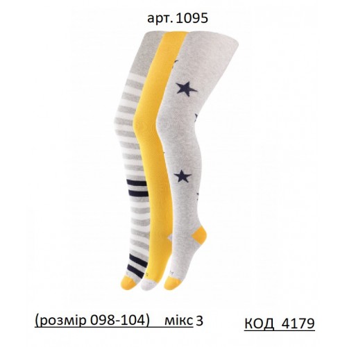 DUNA Колготки бавовняні дитячі МАЛЮНОК 098-104 МІКС кольорів 3шт