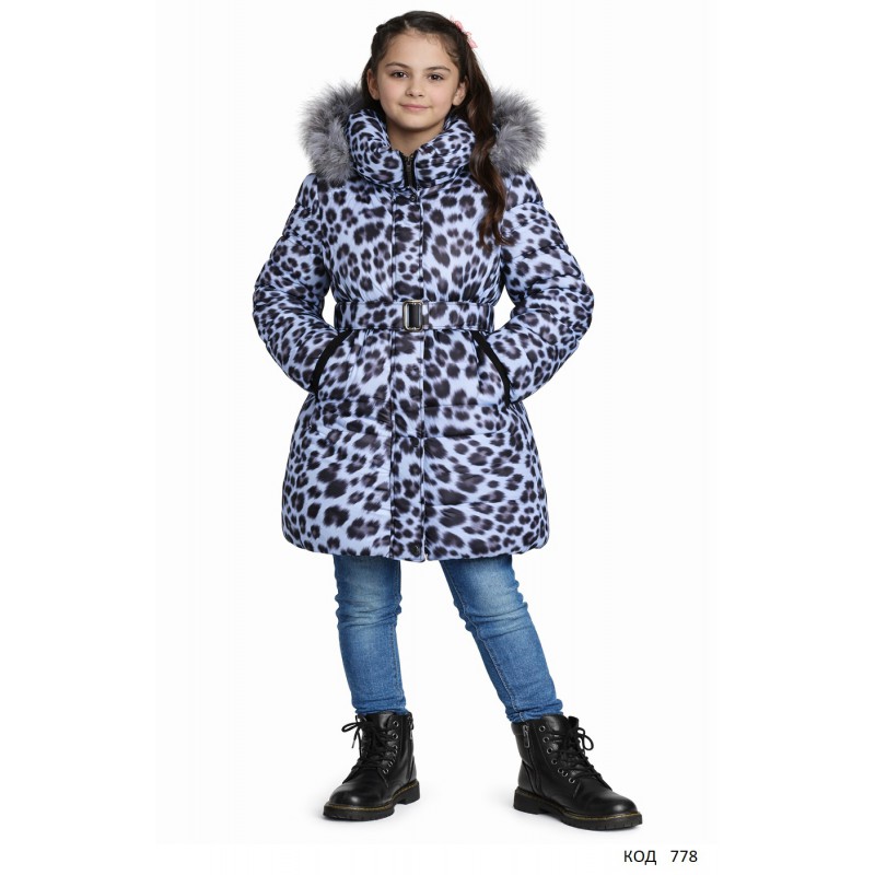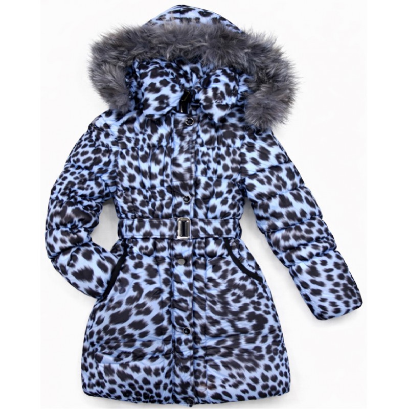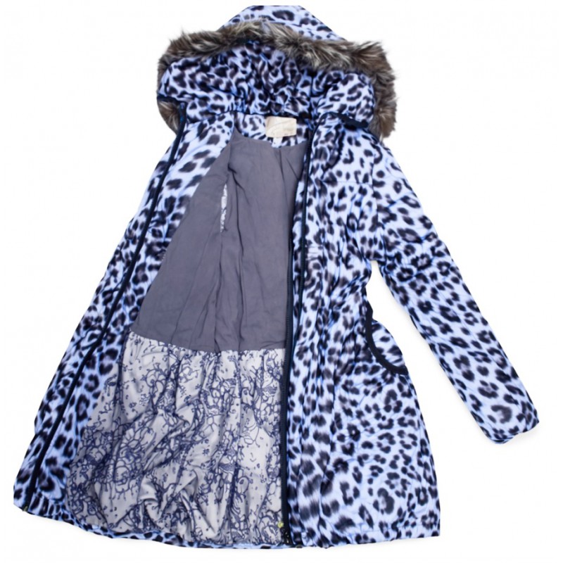Ch Пальто зимове для дівчинки синтапон на флісі Moonbox 140-158 леопард синій 4(1)шт