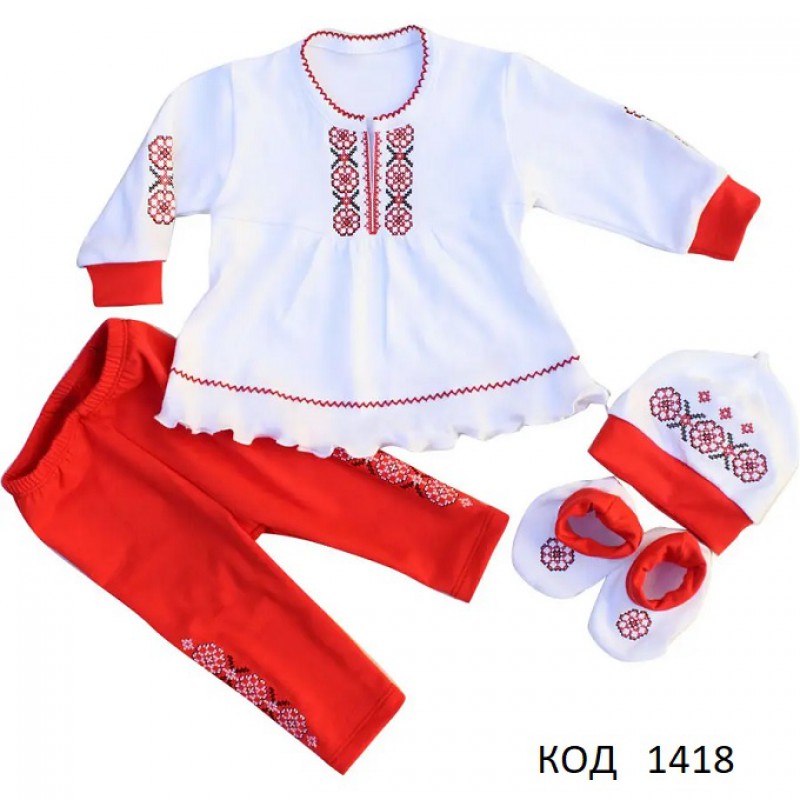 LD Комплект інтерлок для дівчинки ВИШИВКА червоні штани 3/4предмети 68,74, 1 шт.